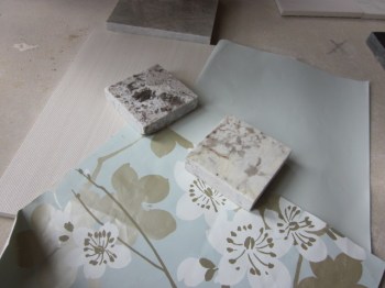 Here you can see some of our granite samples for this bath…I also plan on putting this divine wallpaper in there. A very, cool mirror above the sink will complete the look in here.
