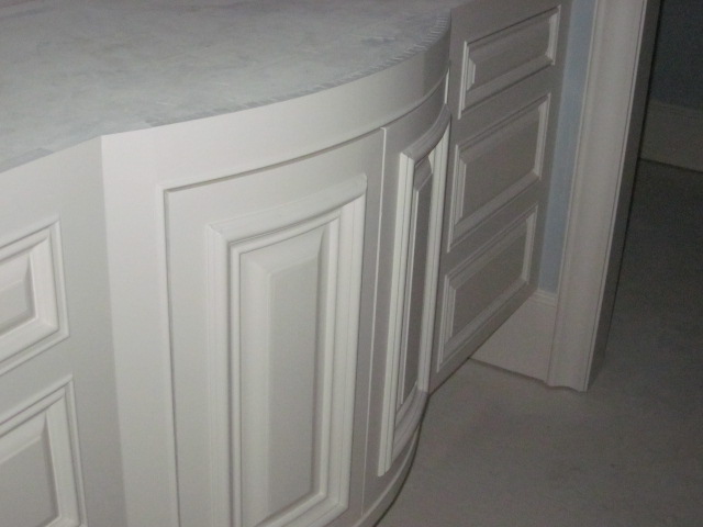If you recall from my previous blog post, “Trim Decisions”, this is the bath cabinet with the front curvature now painted a cream color.