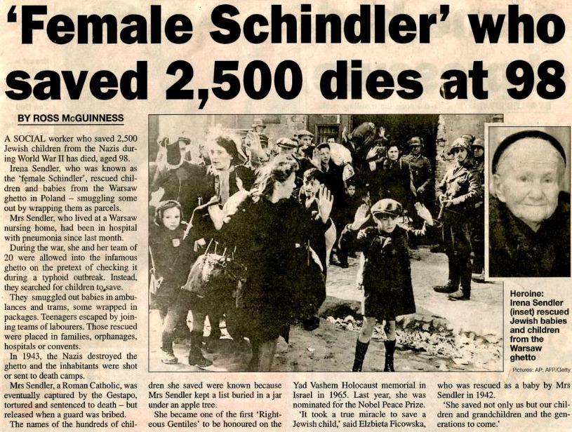 Many details about Irena Sendler, A Heroine of the Holocaust, can be found at http://quilligrapher.hubpages.com/hub/Sendler. It connects the lives of this brave social worker in Poland and four dedicated students in Kansas who brought her amazing story to life.