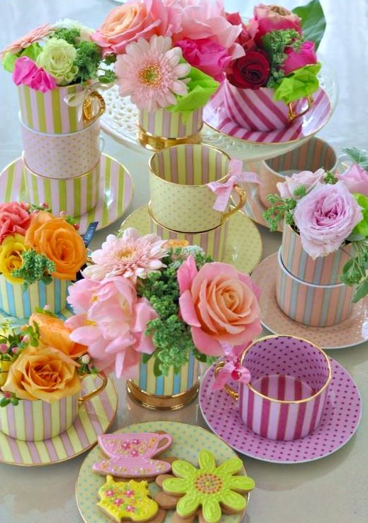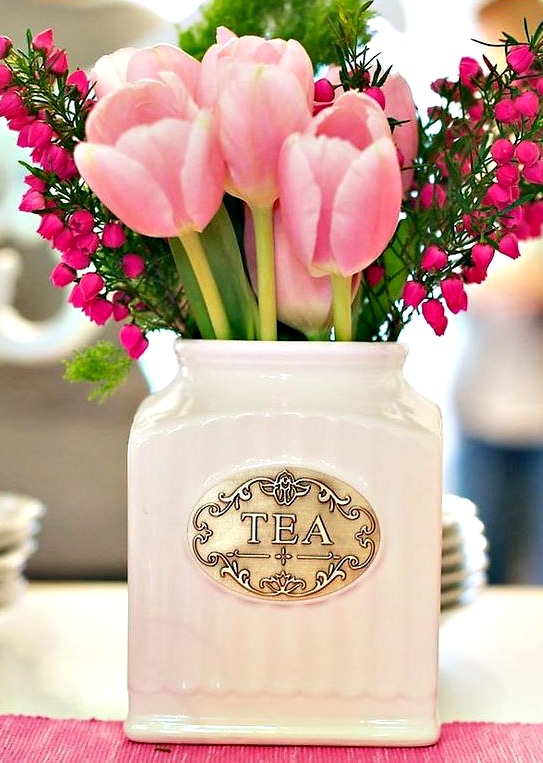 “Use Tea Tins or Tea Cups for Floral Decor”