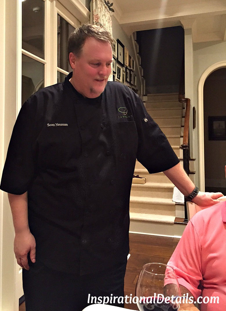 About 90 minutes before our guests were due to arrive, Chef Kent and his Jaspers staff arrived. Chef Kent’s staff to assist him for the evening were Yvette, Chef Scott Neuman (Jaspers Chef de Cuisine), and Mary (Jaspers server).