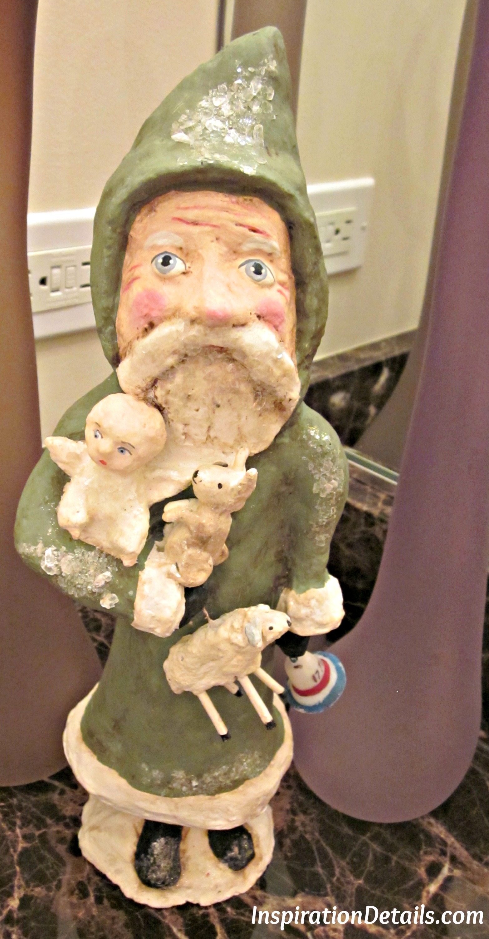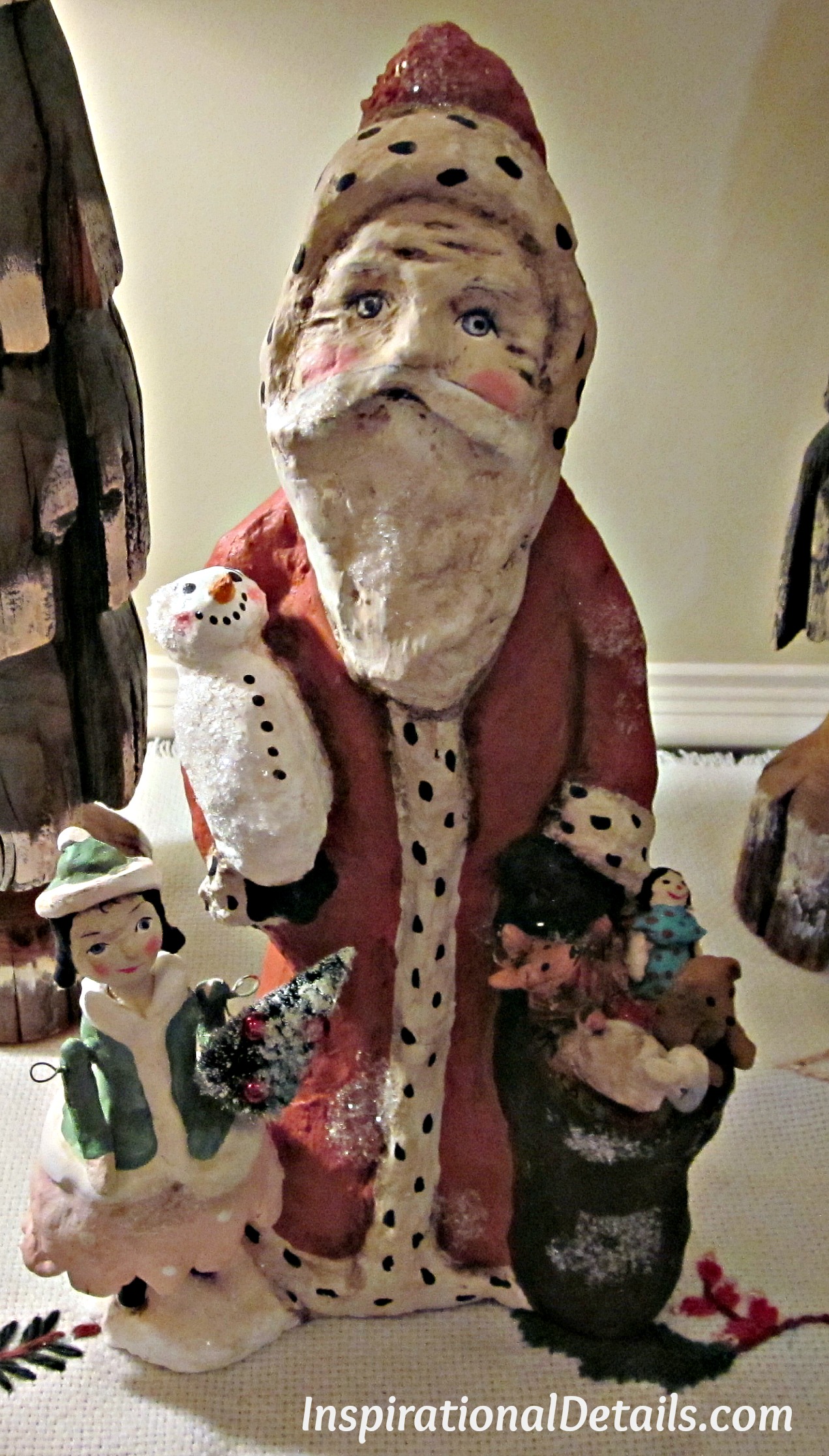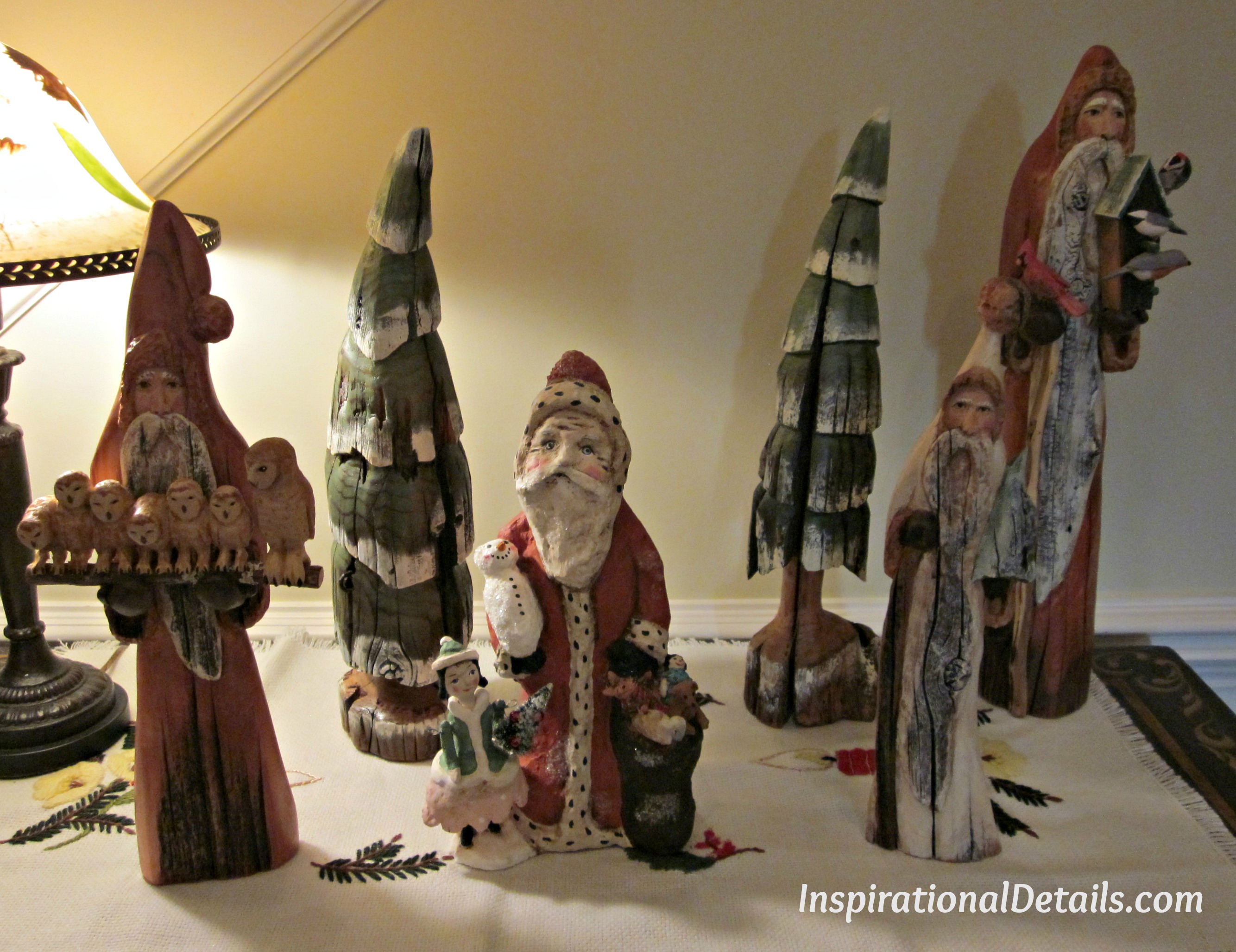 The gal who hosted has a wonderful collection of hand-carved (vintage-looking) Santas. Here’s a look at some of her holiday décor.