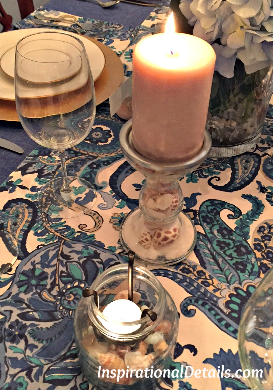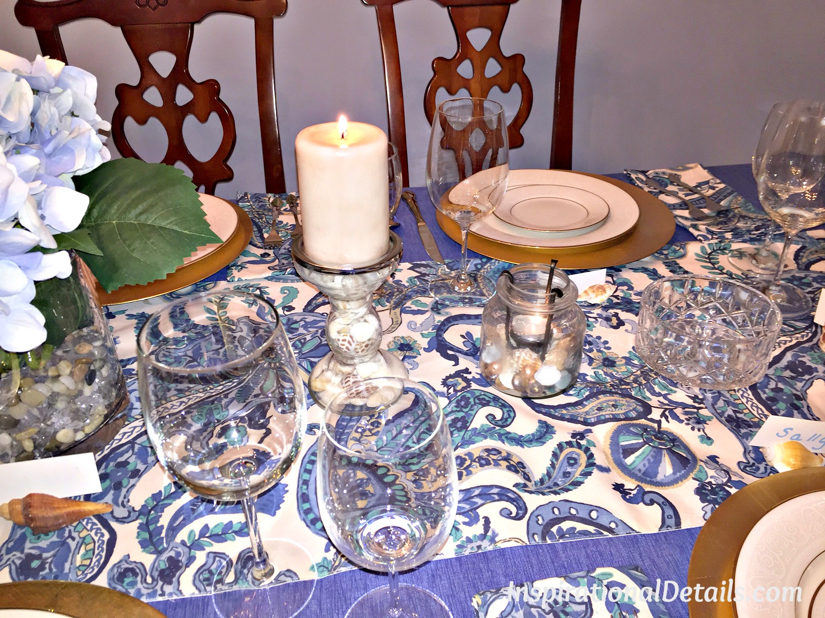 She used blue – the color of the ocean (on sunny days) – as the primary theme for her table…