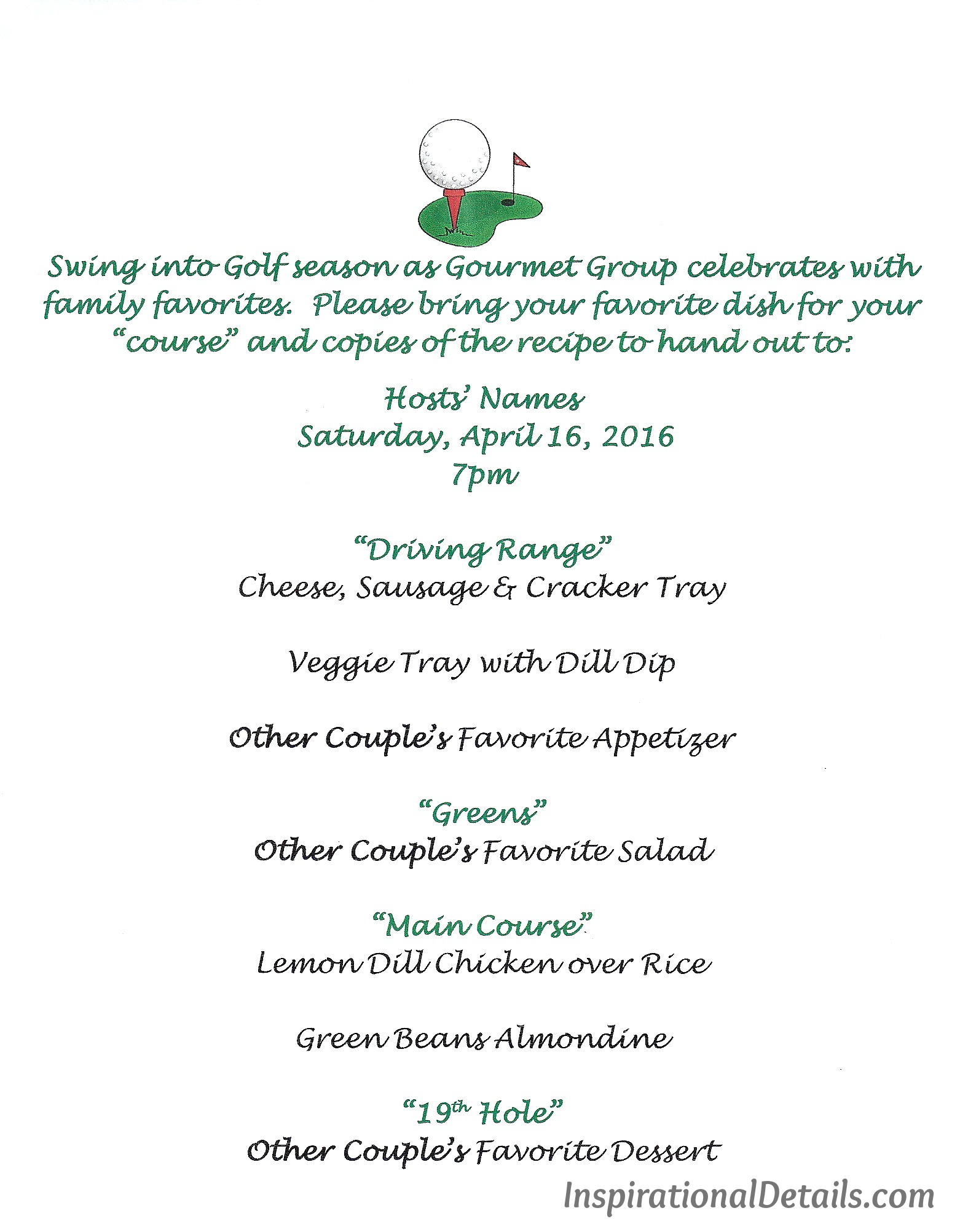 The couple decided on a “Golf-Themed Dinner”, since they already had decorations from the other party. Here’s a look back at our evening.