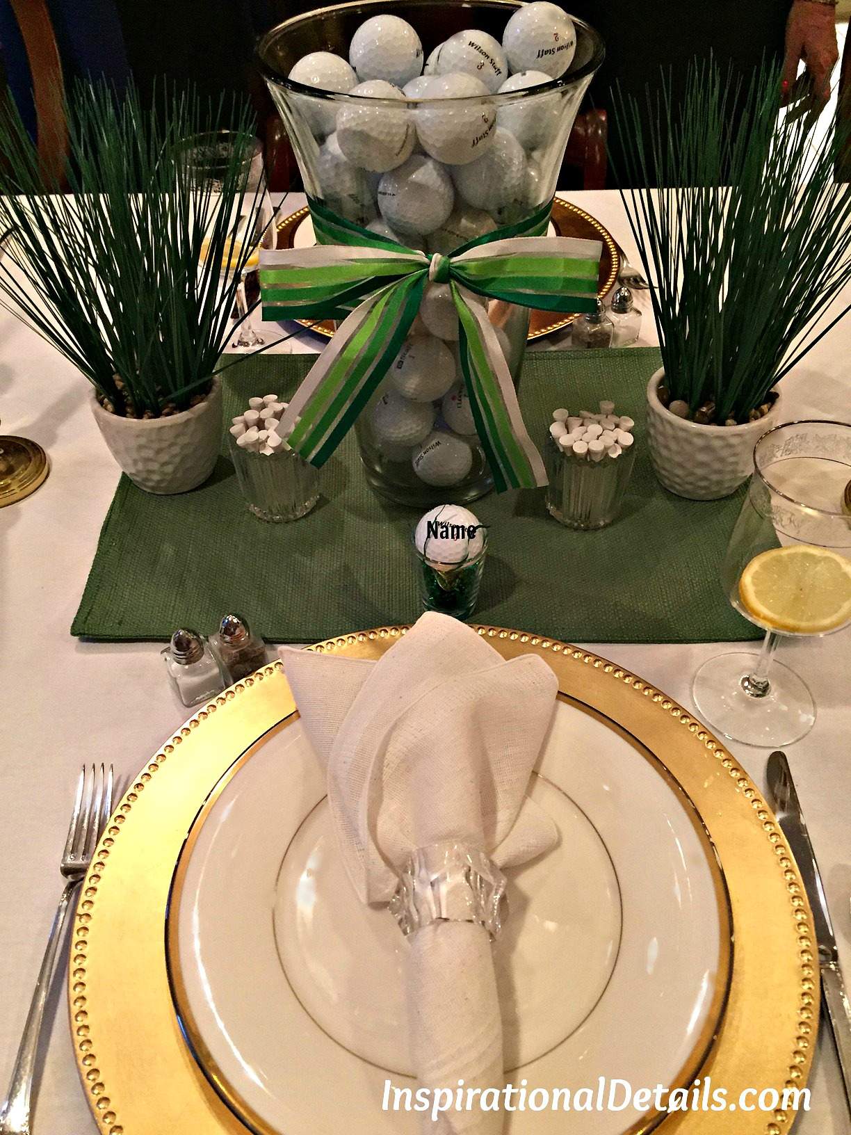 Love the large “bucket” of balls and tees she used for the centerpiece