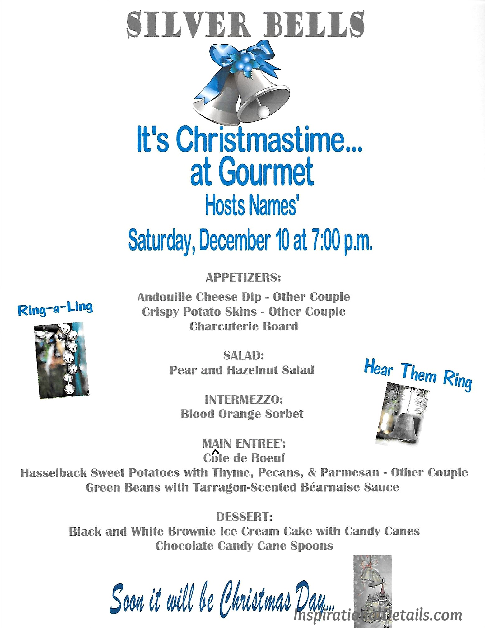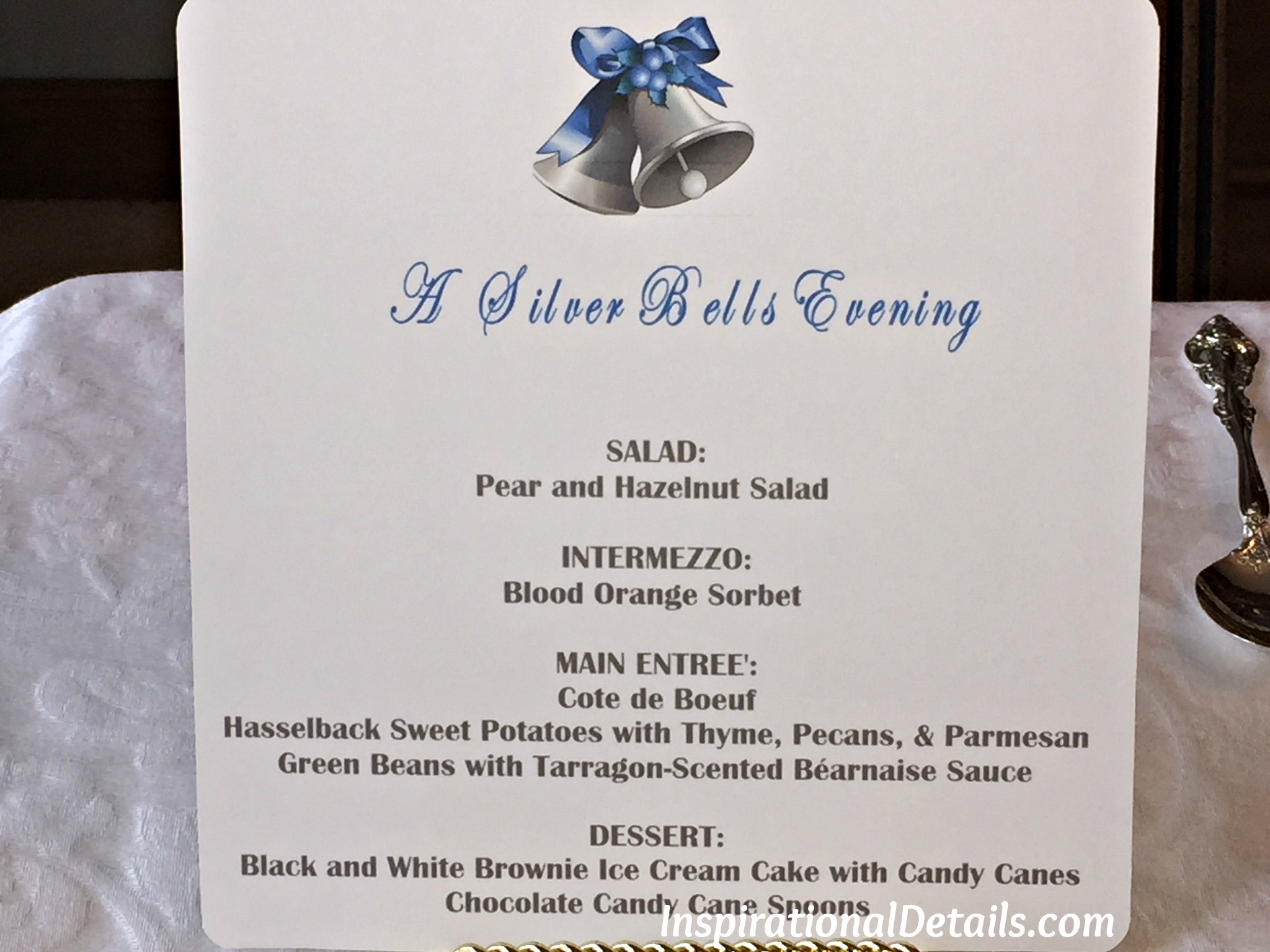 We hosted our Gourmet Group a couple of weeks before Christmas. I chose a “Silver Bells” dinner theme for our evening.