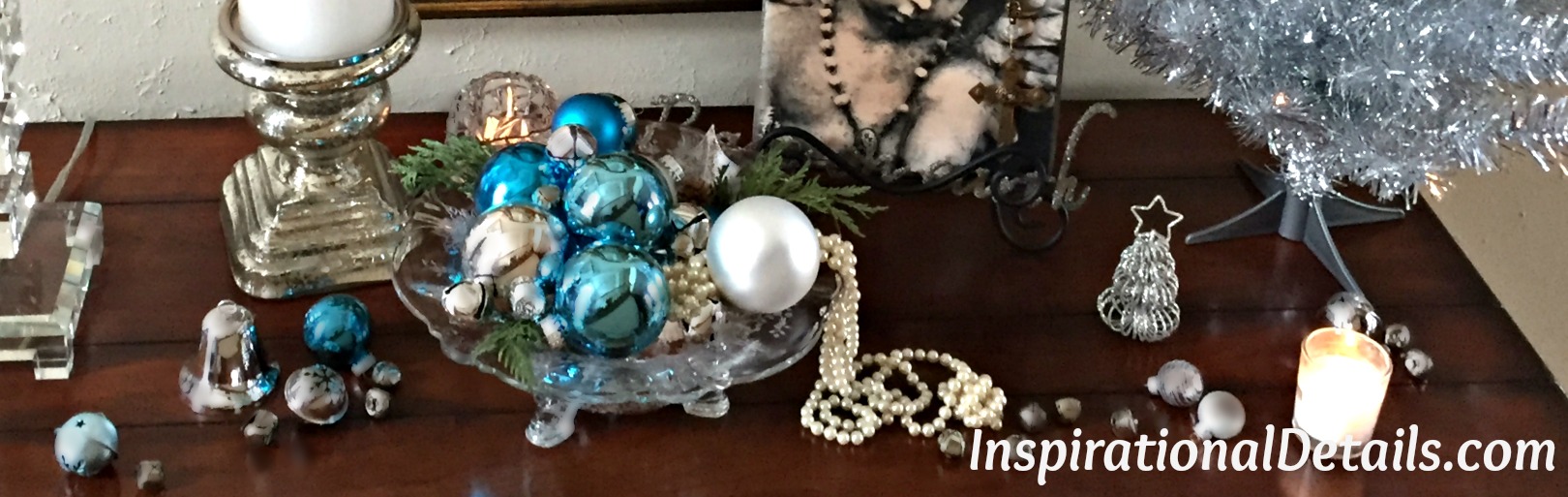 Silver & blue Christmas décor greeted our guests in the foyer.