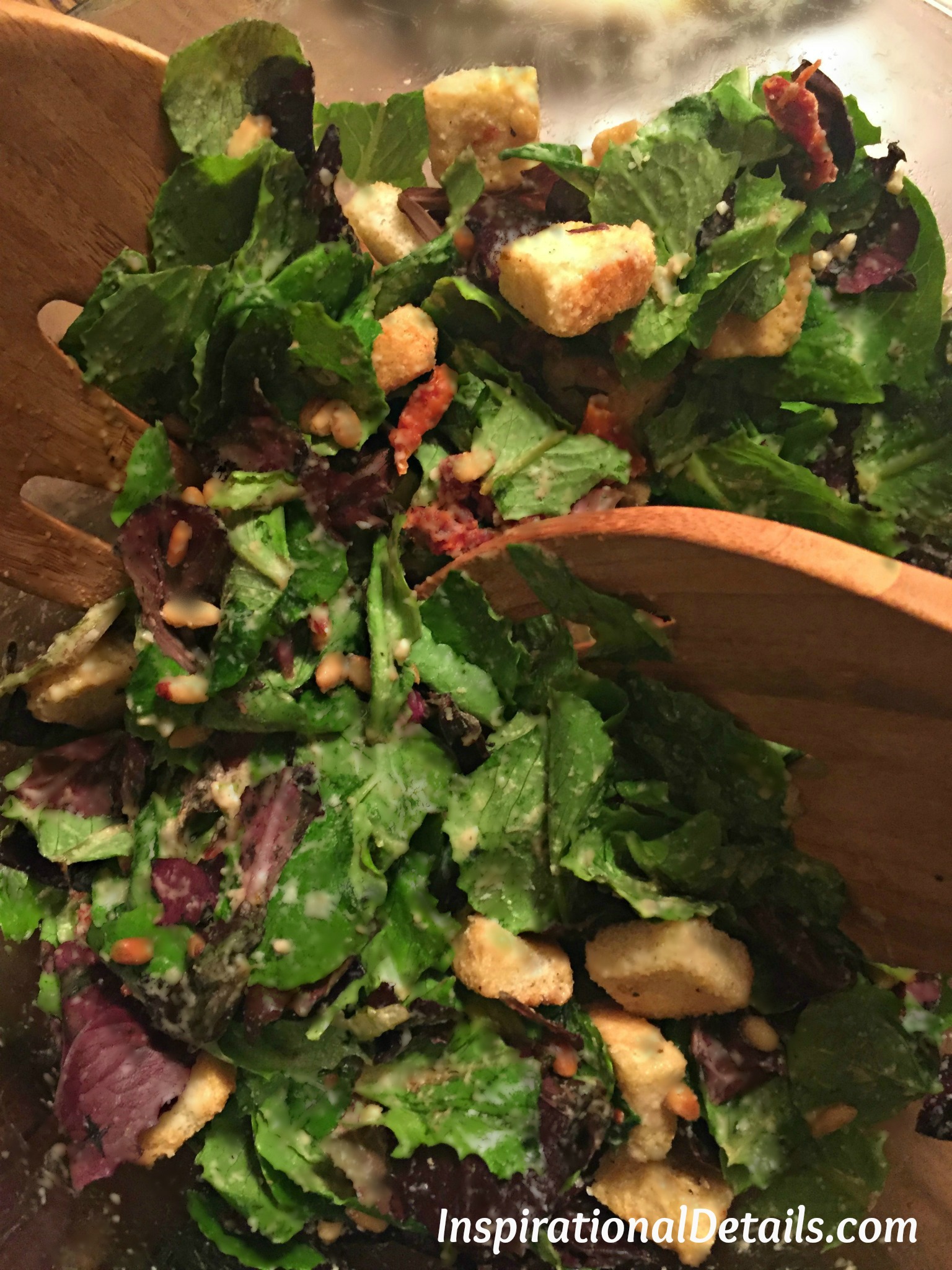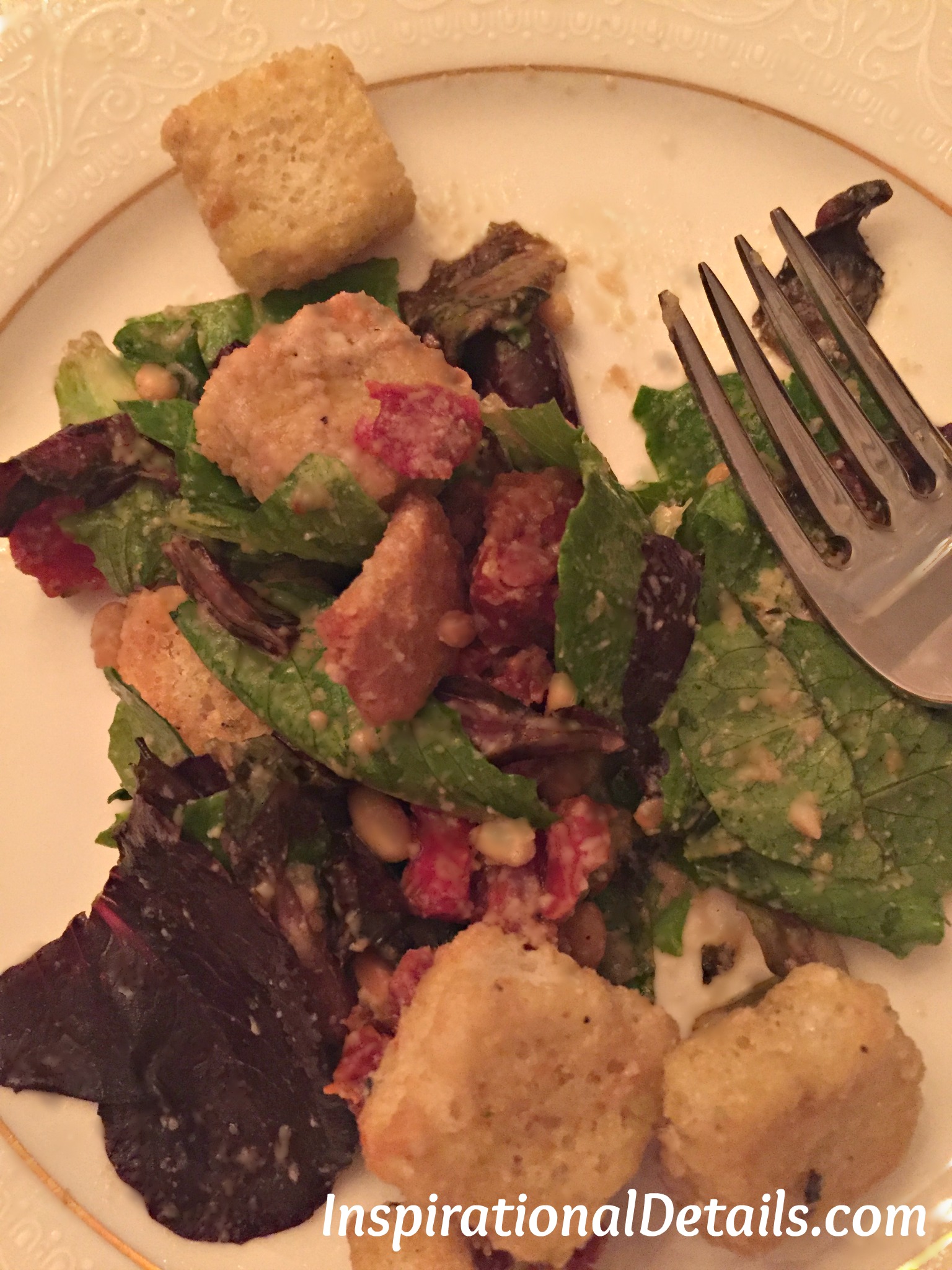 This tasty salad included sundried tomatoes, pecorino romano grated cheese, Caesar croutons, and toasted pine nuts…