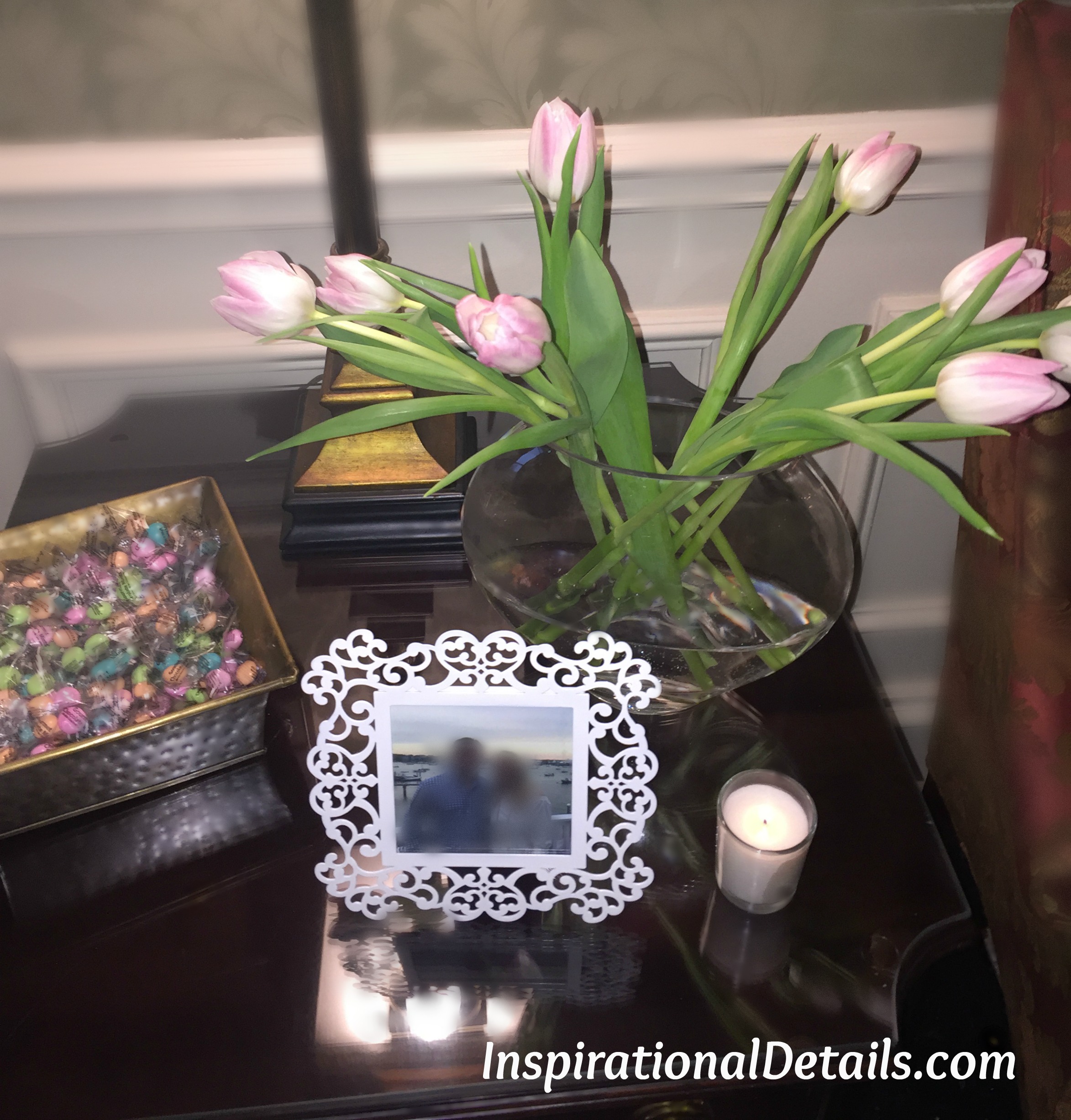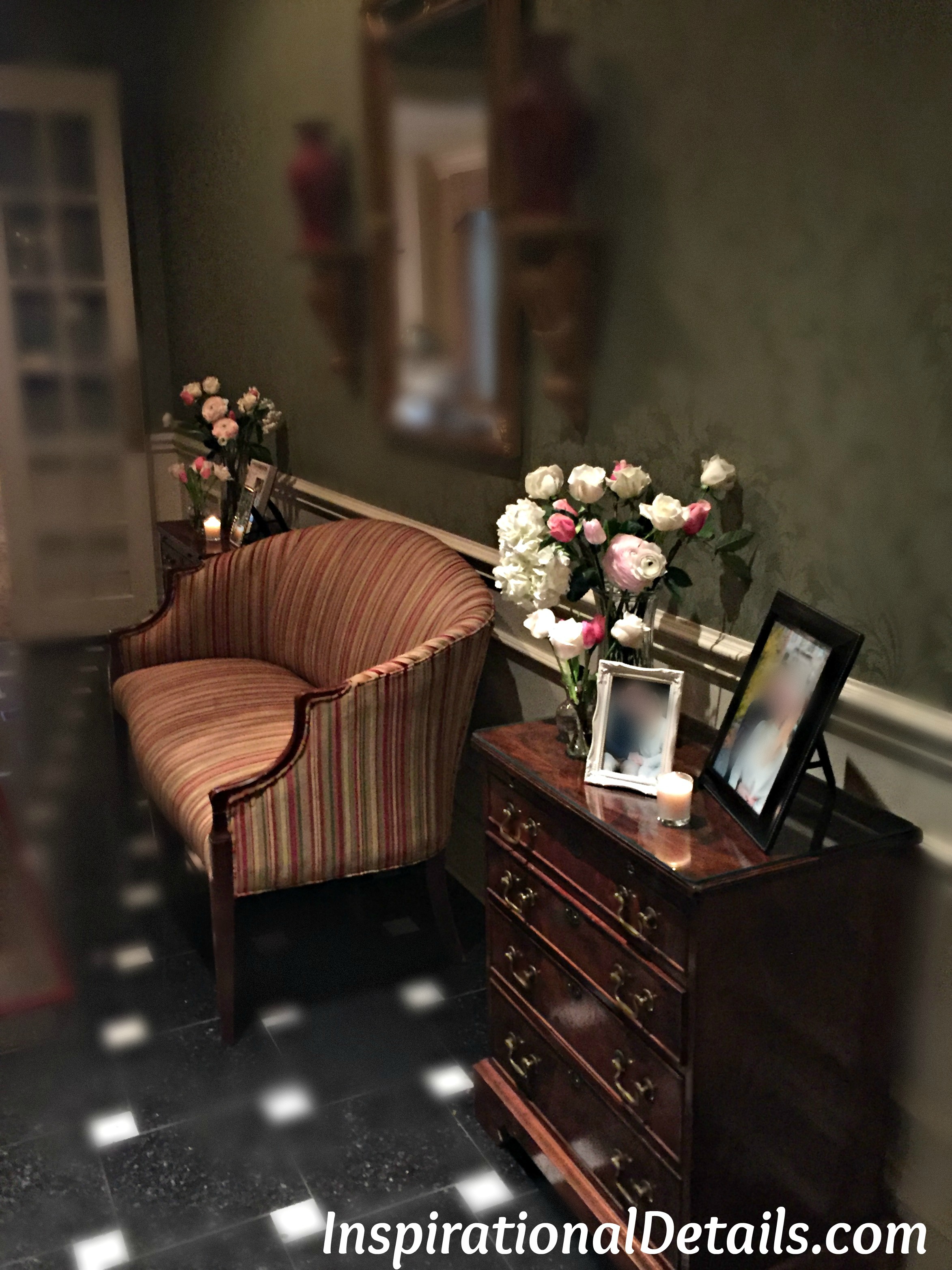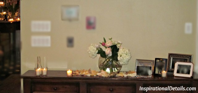 In the foyer area too was a small table where I put some flowers and photos. In some of the secondary locations, I arranged the florals.–