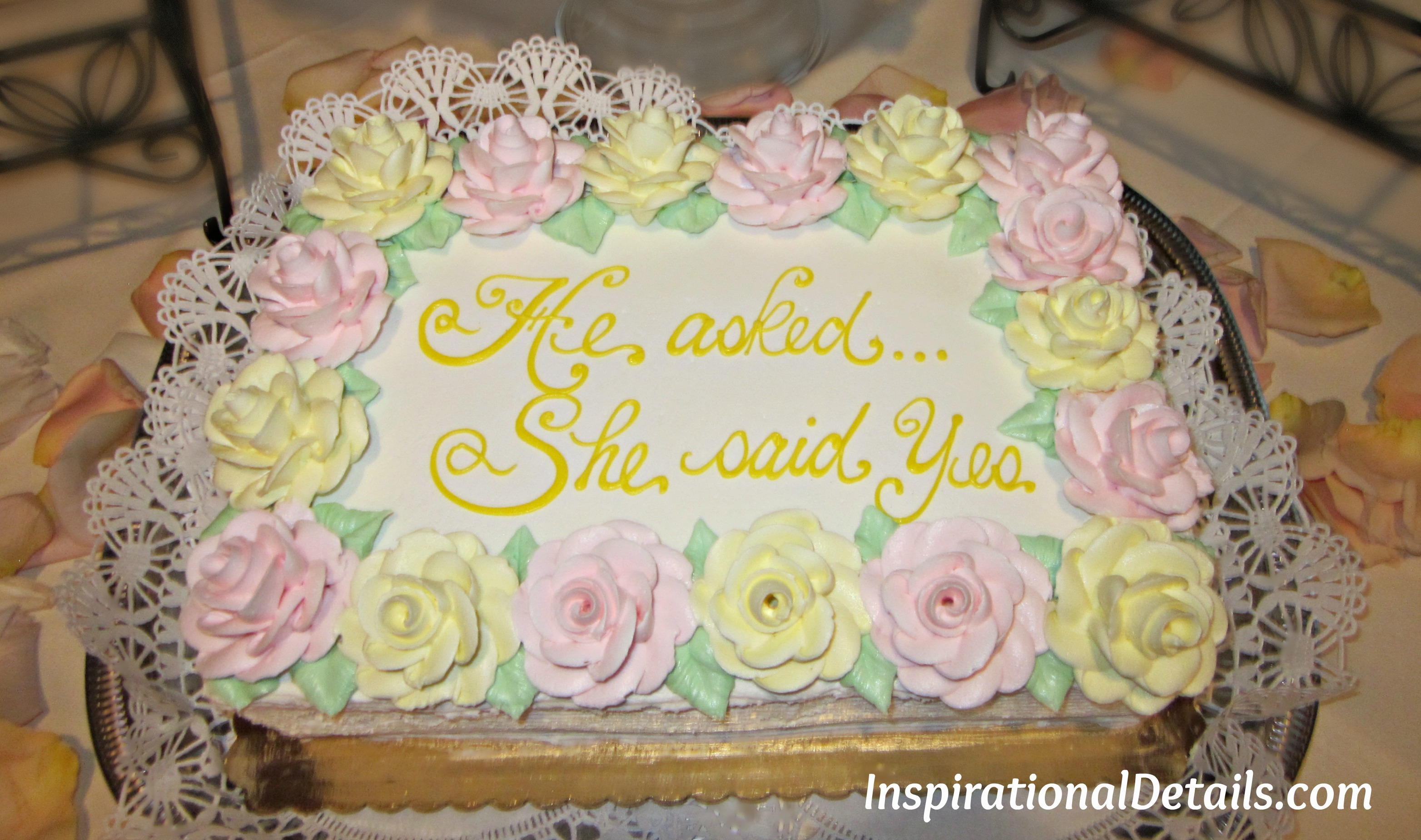 Long stemmed tulips, glowing candles, rose petals, & some photos of the engaged couple…
