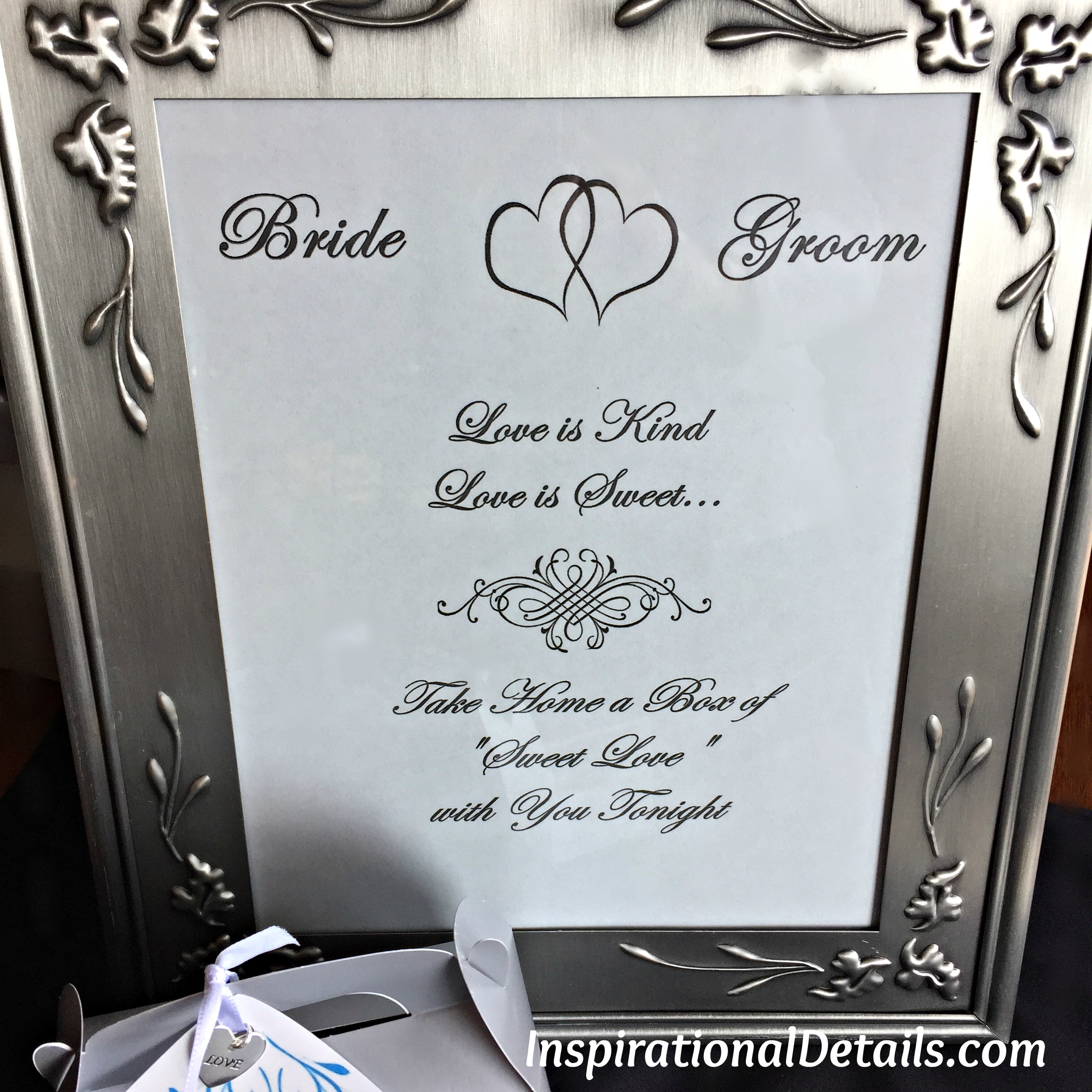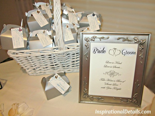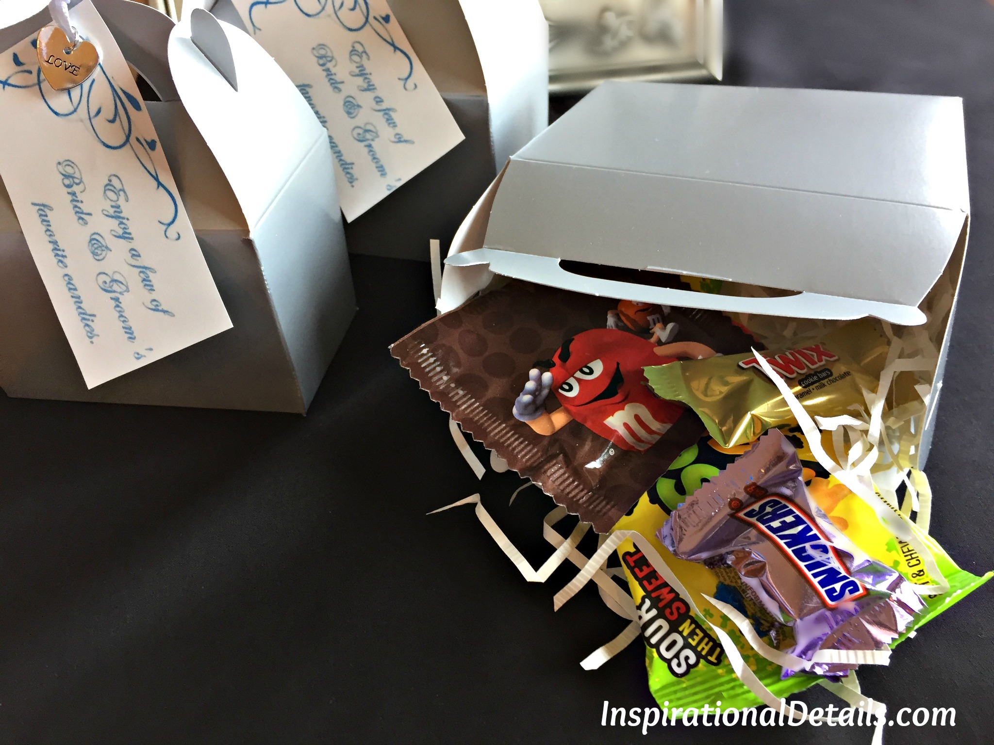 The boxes filled with some of the Bride & Groom-To-Be favorite candies…