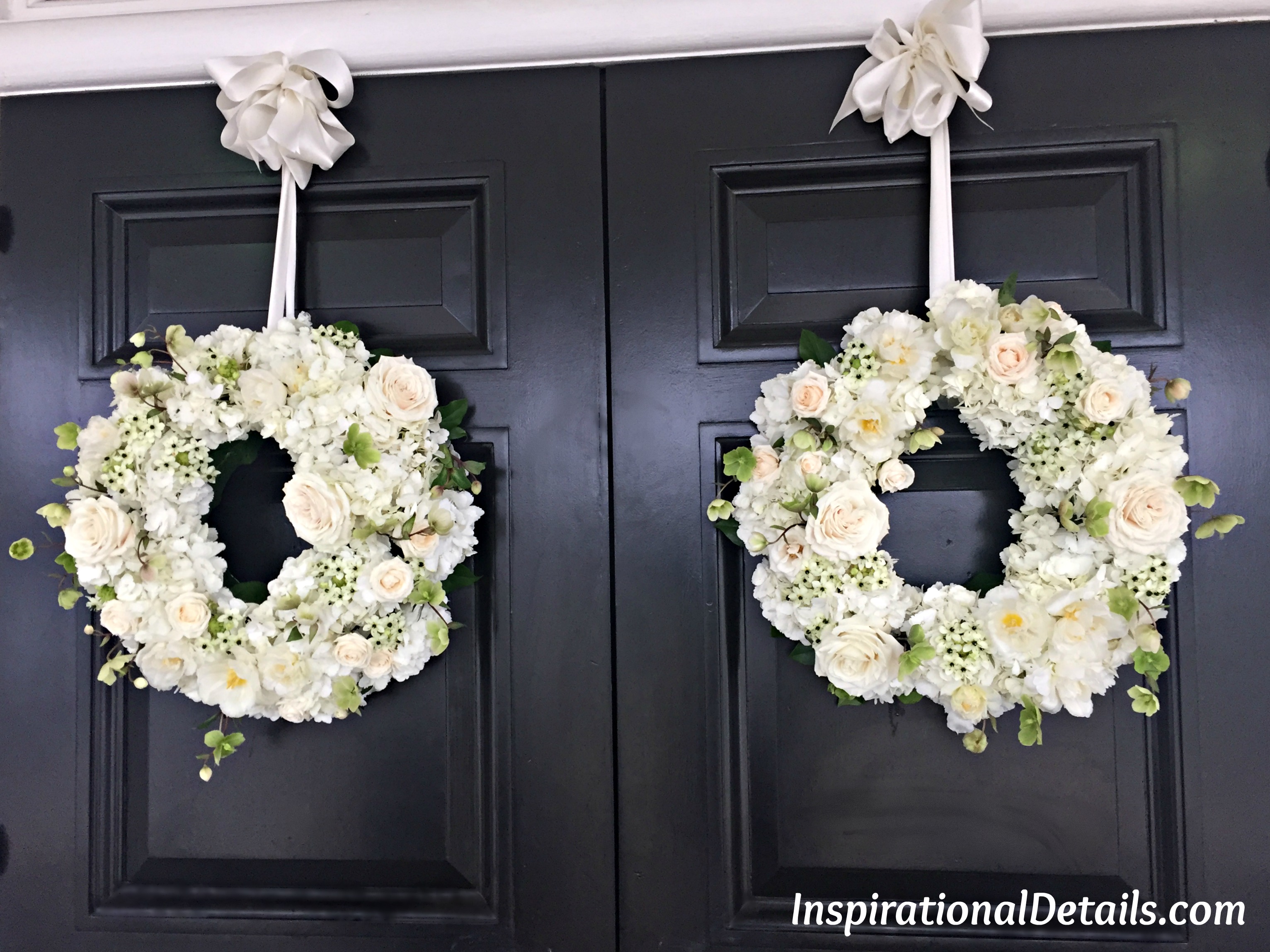 White hydrangea wreaths and white & black balloons tied to the stair railings greeted our guests at the country club’s doors.