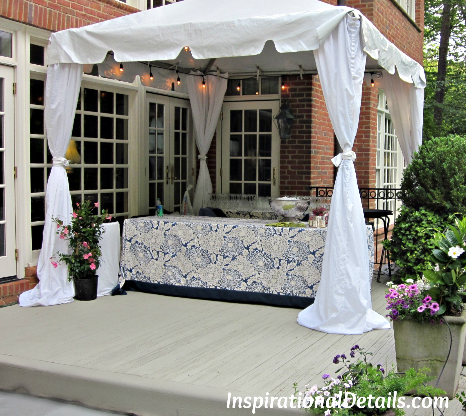The party took place in the home’s backyard. An elegant tent was rented for the dinner portion of the evening, while cocktails were served outside the tent on the patio.
