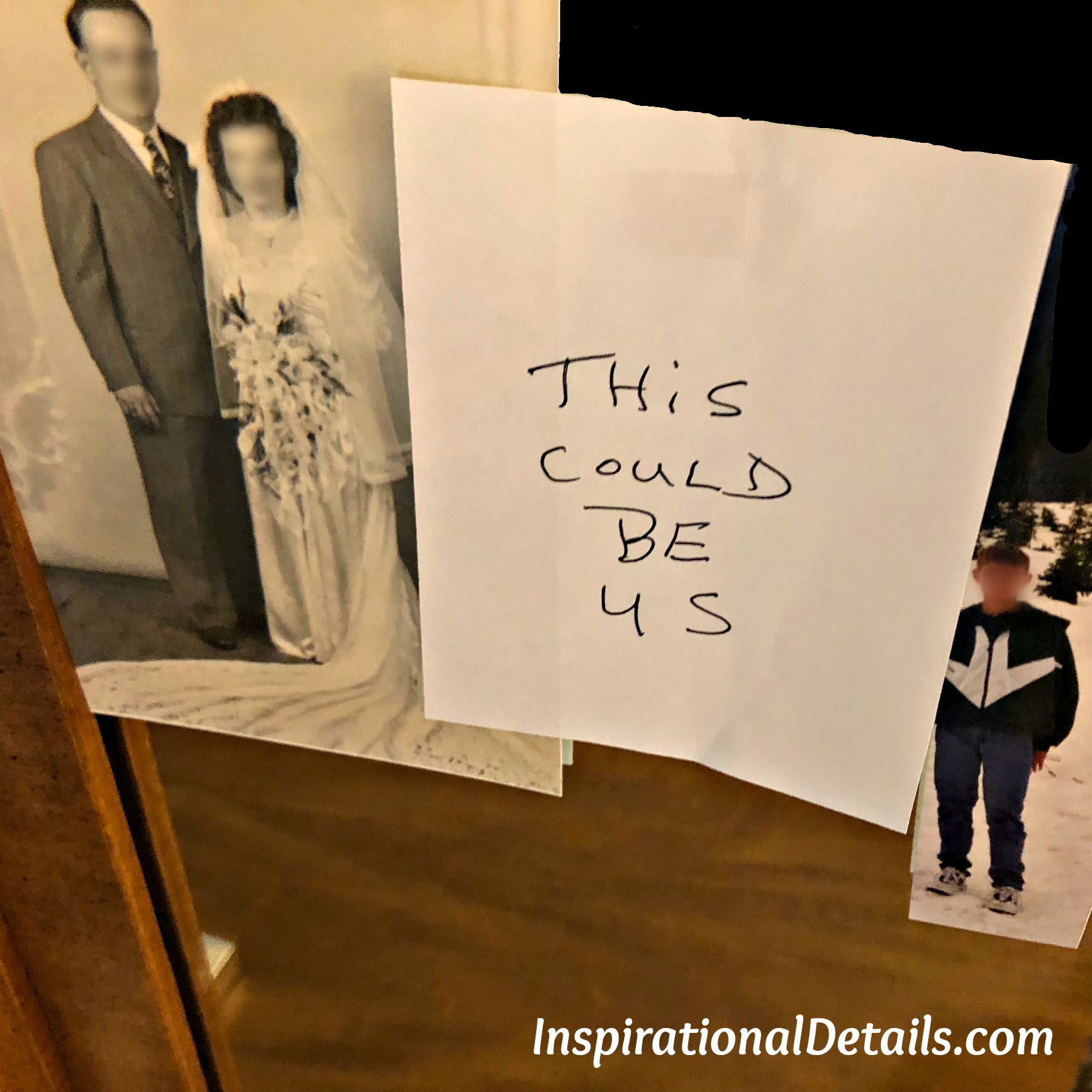 Years later Leni is living in Seattle. Tucked into her vanity mirror is an old picture of Matthew ‘s grandparents. Matthew gave the photo to Leni with the words THIS COULD BE US written on it. Beside that picture on her mirror is one of the first pictures Leni took of Matthew (page 380).