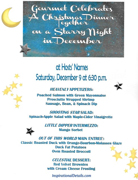 My husband and I hosted our Gourmet Group last December (2017).