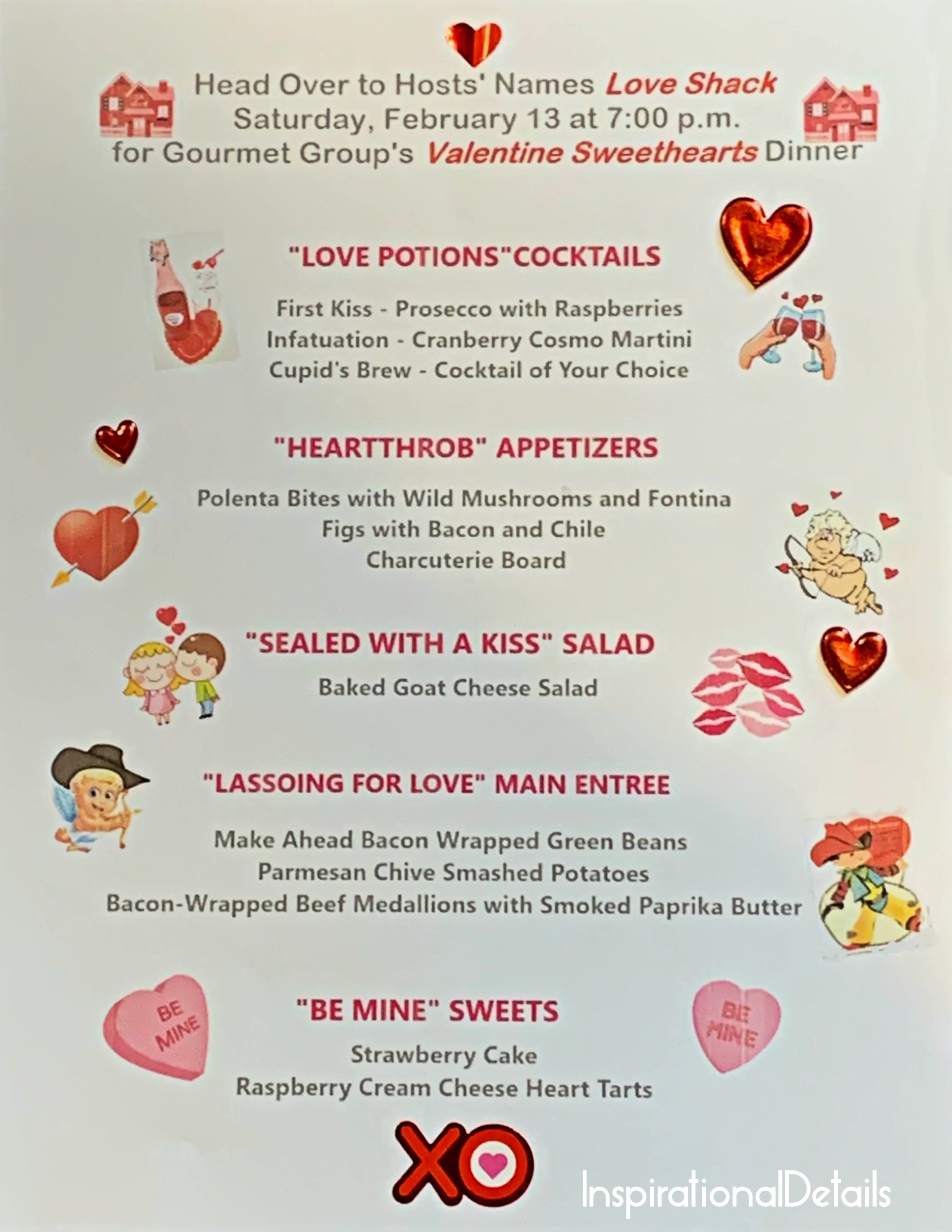 I was very happy that our first date to host happened to coincide with Valentine’s Day. I absolutely love tablescapes both creating and perusing them. Having a Valentine’s Day theme provided me with an easier theme to work with for both the tablescape and the menu.