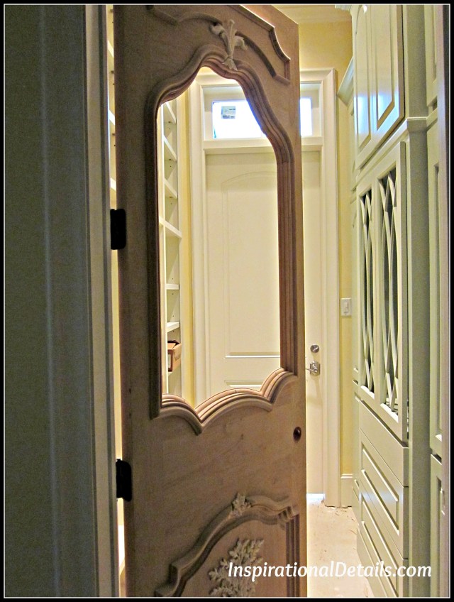Several years ago during the process of searching for a home, we looked at an existing home that was for sale. There was not much we liked about the house, but I fell in love with the door for the walk-in pantry in the house and thus began “my madness”. The door appeared to be quite old and was made of solid wood with carvings in it. Since then, I became obsessed with having a unique pantry door. (Regrettably, I never took a photo of the door.)