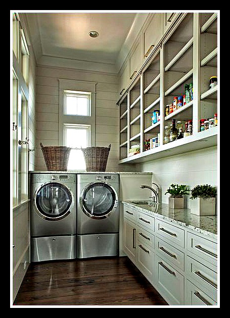 How about this idea? A pantry-laundry room combo! Love it…